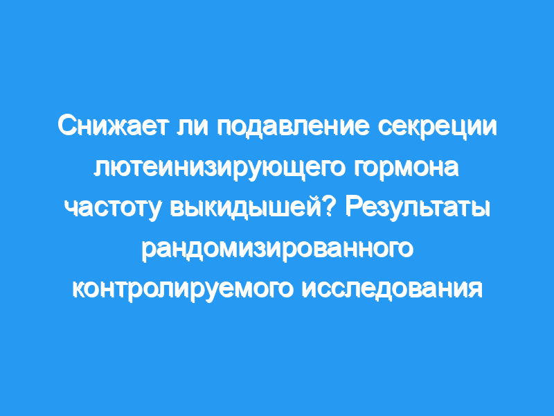 Подавление высоких концентраций лютеинизирующего гормона перед беременностью у женщин с овуляцией с повторным выкидышем и гиперсекрецией лютеинизирующего гормона. не улучшает исход беременности. Исход беременности без подавления гипофиза превосходный.