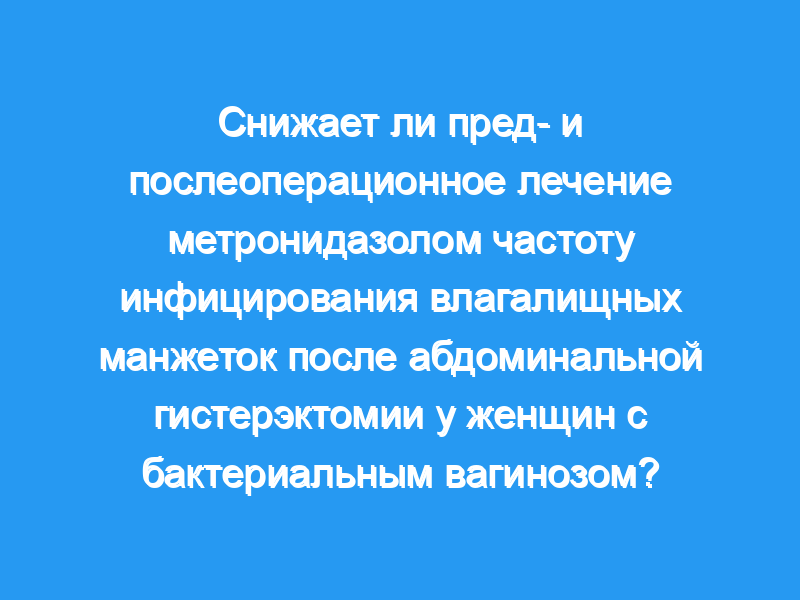 Пред- и послеоперационное лечение метронидазолом ректально в течение не менее 4 дней значительно снижает инфекцию влагалищных манжеток у женщин с аномальной вагинальной флорой.