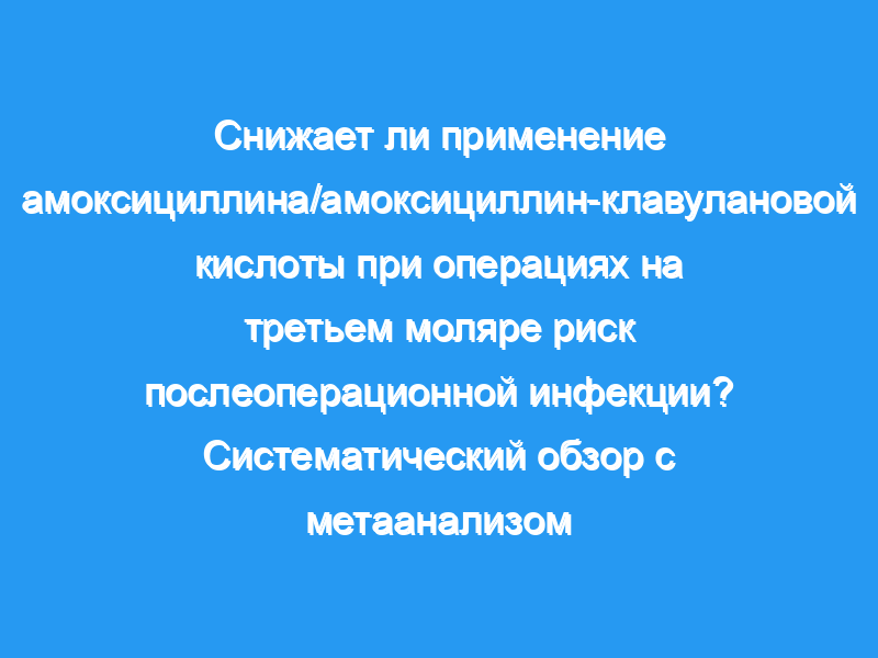 Целью этого систематического обзора было изучить эффективность амоксициллина/амоксициллин-клавулановой кислоты для снижения риска послеоперационной инфекции после операции на третьем моляре и оценить неблагоприятные исходы у этих пациентов, а также у здоровых добровольцев.