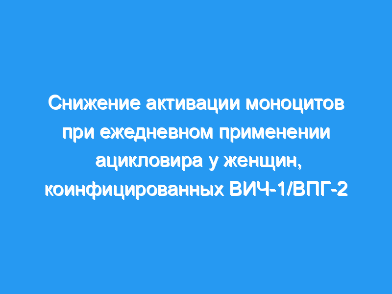 Эти данные свидетельствуют о том, что снижение активации моноцитов может играть незначительную роль в способности ежедневного применения ацикловира замедлять прогрессирование ВИЧ-инфекции. Регистрационный номер клинического испытания: NCT00405821.