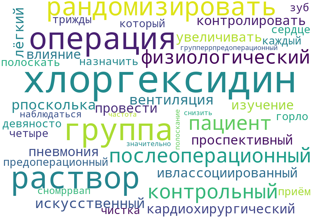 Поскольку искусственная вентиляция легких после кардиохирургических операций увеличивает риск ИВЛ-ассоциированной пневмонии (ВАП), мы провели проспективное рандомизированное контролируемое исследование для изучения влияния предоперационного 0,2% хлоргексидина на послеоперационную ВАП. Девяносто четыре пациента, которым была назначена операция на сердце, были рандомизированы в группу хлоргексидина (N = 47) или контрольную (физиологический раствор) группу (N = 47). За день до операции пациенты трижды полоскали горло 0,2% хлоргексидином или физиологическим раствором через 30 мин после каждого приема пищи и через 5 мин после чистки зубов перед сном.