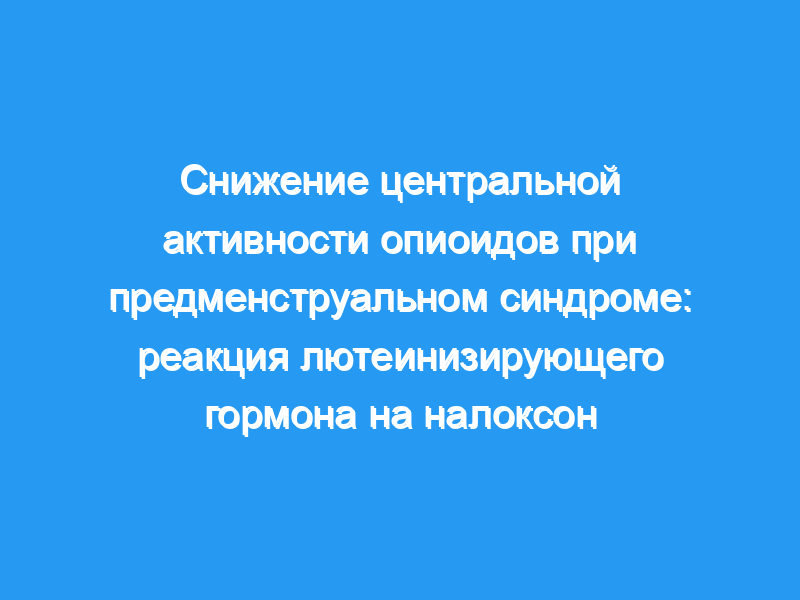 Контрольные женщины имеют повышенный центральный опиоидный тонус во время средней лютеиновой фазы, который уменьшается и становится минимальным в поздней лютеиновой фазе менструального цикла. Напротив, у женщин с ПМС наблюдается потеря центрального опиоидного тонуса во время срединной фазы, о чем свидетельствует потеря реакции ЛГ на налоксон. Этот ослабленный центральный опиоидный тонус у женщин с ПМС по сравнению с бессимптомными контрольными женщинами может играть определенную роль в патофизиологии ПМС.