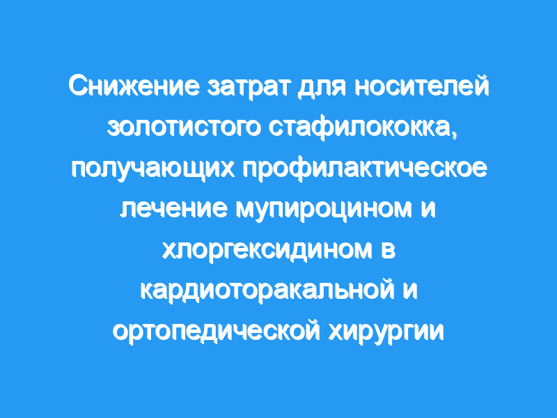 В заключение, у пациентов, перенесших кардиоторакальную или ортопедическую операцию, скрининг на носительство S. aureus в носу и лечение носителей с помощью MUP-CHX приводит к существенному сокращению расходов на госпитализацию.