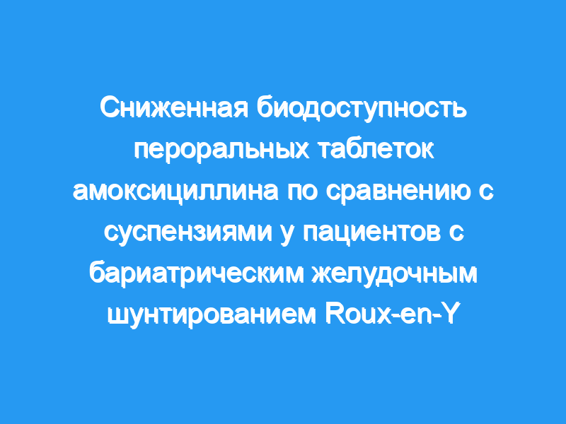 Оценить относительную биодоступность пероральных таблеток амоксициллина (AMX) по сравнению с суспензией AMX у пациентов с бариатрическим желудочным шунтированием Roux-en-Y.