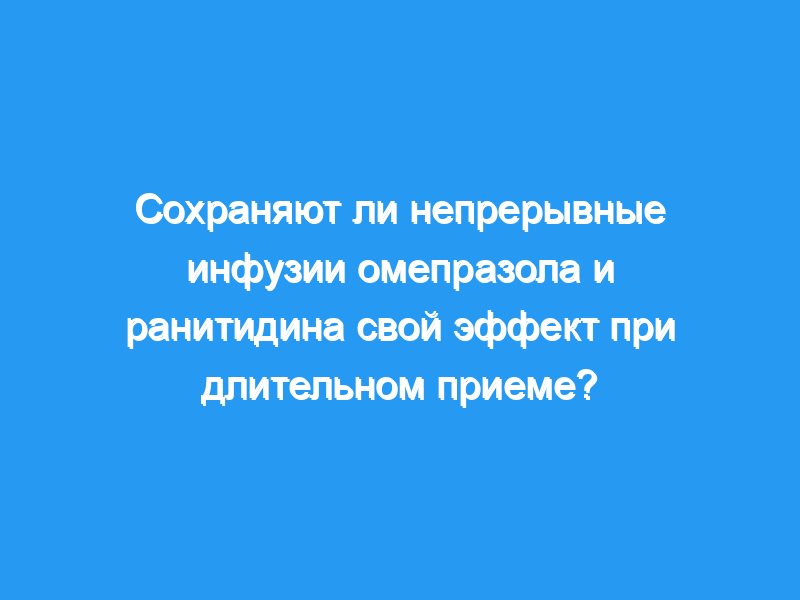 Длительные инфузии Н2-антагонистов обычно используются в отделениях интенсивной терапии, хотя мало что известно об их антисекреторной эффективности после первых 24 часов приема. Целью данного исследования была оценка антисекреторных эффектов инфузий ранитидина и омепразола в течение 72 часов. Двенадцать здоровых добровольцев получали индивидуально подобранные 72-часовые внутривенные инфузии омепразола, ранитидина или плацебо в двойном слепом перекрестном исследовании. Сравнивали рН желудка и требования к дозировке.