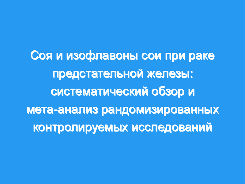Результаты мета-анализа двух исследований предполагают, что могут быть подтверждены эпидемиологические данные о потенциальной роли сои/изофлавонов сои в снижении риска РПЖ, однако требуется четкое понимание влияния сои/изофлавонов на ПСА, общий тестостерон, свободный тестостерон и Уровни ГСПГ у мужчин с РПЖ или с выявленным риском развития РПЖ не могли быть получены на основе этих данных, учитывая ограничения размера выборки и продолжительности исследования в отдельных исследованиях. Этот мета-анализ показал хороший профиль безопасности добавок сои/соевых изофлавонов.