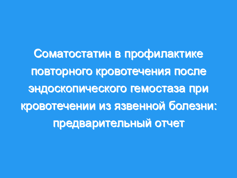 Предварительные результаты свидетельствуют о том, что соматостатин может быть более эффективным, чем ранитидин и омепразол, в предотвращении повторного кровотечения после эндоскопической инъекционной терапии кровоточащих пептических язв.