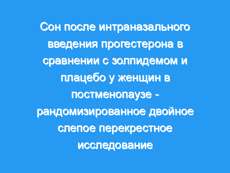 Мы сравнили влияние сна на эндокринную систему после интраназального введения прогестерона (MPP22), золпидема и плацебо у здоровых женщин в постменопаузе. Дизайн: Это было рандомизированное двойное слепое перекрестное исследование.