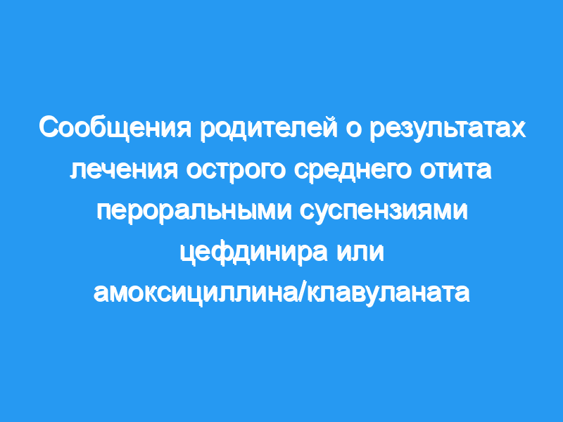Сравнить результаты, сообщенные родителями (удовлетворенность, переносимость, соблюдение требований и пропущенные занятия/дневной уход) для детей (в возрасте от 6 месяцев до 6 лет), получавших цефдинир или амоксициллин/клавуланат по поводу острого среднего отита. Метод: В фазе IV, слепом, рандомизированном, многоцентровом исследовании с параллельными группами, родителям или законным опекунам было предложено заполнить анкету родителей отита (OPQ) через 12-14 дней после первой дозы цефдинира или амоксициллина/ клавуланата пероральных суспензий. Ответы в каждой из областей результатов были проанализированы с использованием непараметрического статистического анализа.