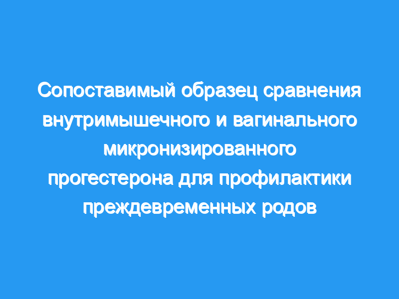 Сравнить вагинальное и внутримышечное введение прогестерона для предотвращения преждевременных родов у женщин с одноплодной беременностью и повышенным риском преждевременных родов. Дизайн исследования: Проспективное сравнительное клиническое исследование. Население: Сто шестьдесят беременных женщин на сроке беременности 20-24 недели с риском преждевременных родов были разделены на: 80 женщин, которые получали микронизированные таблетки прогестерона по 200 мг вагинально ежедневно (группа А) и 80 женщин, которые получали 100 мг прогестерона в виде внутримышечных инъекций каждый третий день (группа В).