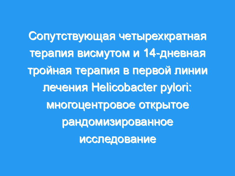 В этом многоцентровом открытом рандомизированном исследовании мы набрали взрослых пациентов (в возрасте от 20 лет) с инфекцией H. pylori из девяти медицинских центров Тайваня. Пациенты, у которых было по крайней мере два положительных теста на быструю уреазу, гистологию, посев или серологию, или у которых был один положительный тест на 13С-мочевину в дыхании для скрининга рака желудка, имели право на зачисление. Пациенты были рандомизированы (1:1:1) на либо сопутствующую терапию (лансопразол 30 мг, амоксициллин 1 г, кларитромицин 500 мг и метронидазол 500 мг, все два раза в день) в течение 10 дней, либо четырехкратную терапию висмутом (висмута трикалия дицитрат 300 мг четыре раза в день, лансопразол 30 мг дважды ежедневно, тетрациклин 500 мг четыре раза в день и метронидазол 500 мг три раза в день) в течение 10 дней или тройная терапия (лансопразол 30 мг, амоксициллин 1 г и кларитромицин 500 мг, все назначаются дважды в день) в течение 14 дней. Для рандомизации использовалась сгенерированная компьютером последовательность рандомизации с перестановкой блоков с размером блока 6, и последовательность была скрыта в непрозрачном конверте до тех пор, пока не было назначено вмешательство. Следователи были замаскированы под распределение лечения. Первичным результатом была частота эрадикации H. pylori с помощью терапии первой линии, оцененной в популяции, намеревающейся лечиться. Это испытание зарегистрировано в ClinicalTrials.gov , номер NCT01906879. Результаты: В период с 17 июля 2013 года по 20 апреля 2016 года 5454 пациента прошли скрининг на соответствие критериям. Из них 1620 пациентов были рандомизированы в этом исследовании. Частота эрадикации составила 90,4% (488/540 [95% ДИ 87·6-92·6 ]) для 10-дневной четырехкратной терапии висмутом, 85·9% (464/540 [82·7-88·6]) для 10-дневной сопутствующей терапии и 83·7% (452/540 [80·4-86·6]) для 14-дневной тройной терапии в анализе намерения лечить. 10-дневная четырехкратная терапия висмутом превосходила 14-дневную трехкратную терапию (разница 6·7% [95% ДИ 2·7-10·7 , р=0·001), но не 10-дневная сопутствующая терапия. 10-дневная сопутствующая терапия не превосходила 14-дневную тройную терапию. Частота нежелательных явлений составила 67% (358/533) у пациентов, получавших 10-дневную четырехкратную терапию висмутом, 58% (309/535) у пациентов, получавших 10-дневную сопутствующую терапию, и 47% (252/535) у пациентов, получавших 14-дневную тройную терапию. Интерпретация: Четырехкратная терапия висмутом предпочтительнее 14-дневной трехкратной терапии при лечении первой линии в условиях растущей распространенности резистентности к кларитромицину. Сопутствующая терапия, проводимая в течение 10 дней, может оказаться неоптимальной, и следует рассмотреть вопрос о более длительном лечении. Финансирование: Национальная больница Тайваньского университета и Министерство науки и технологий Тайваня.