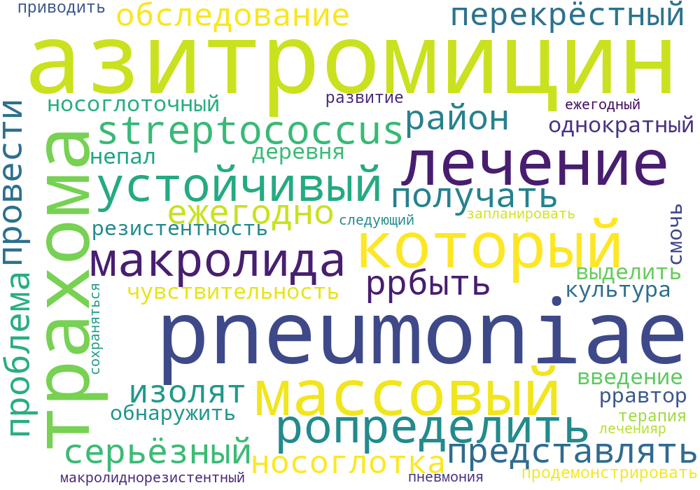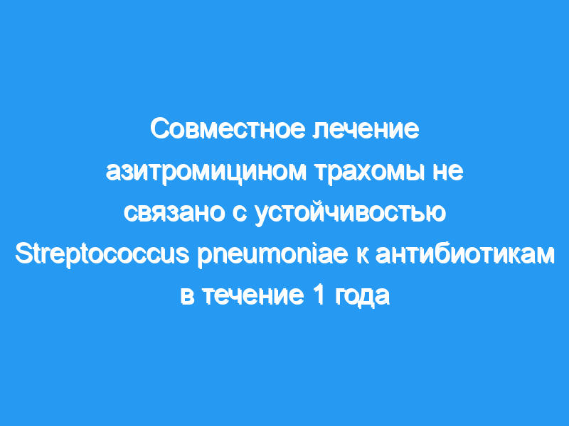 Авторы не смогли продемонстрировать, что массовая терапия азитромицином трахомы приводила к развитию макролиднорезистентной пневмонии S. pneumoniae, которая сохраняется до следующего запланированного ежегодного лечения.
