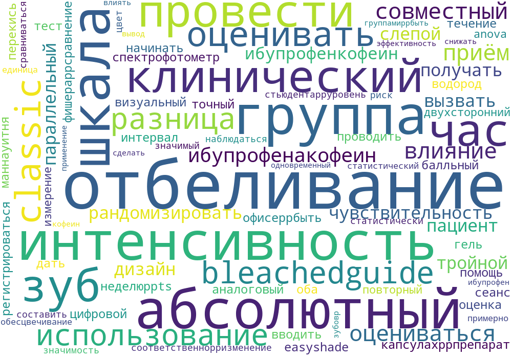 TS регистрировался до до 48 часов после отбеливания зубов по визуальной аналоговой шкале 0-10 (ВАШ) и 5-балльной цифровой шкале оценки (NRS). Цвет оценивали с помощью шкал VITA Classic и VITA Bleachedguide (ΔSGU) и спектрофотометра VITA Easyshade (ΔE*ab и ΔE00). Абсолютный риск TS в обеих группах оценивали с использованием точного tes Фишера.