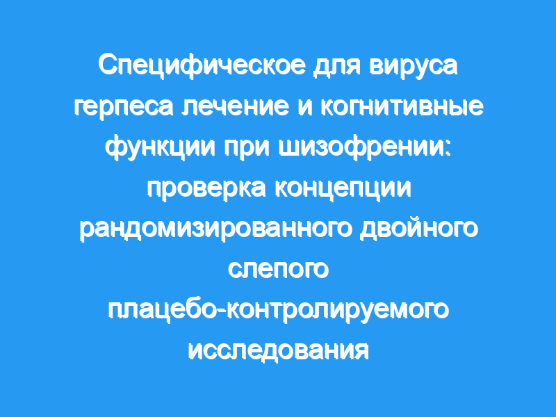 Чтобы проверить нашу гипотезу о том, что валацикловир, специфичный к вирусу герпеса препарат, добавляемый к нейролептикам (APs), улучшит когнитивные функции и психопатологию у пациентов с шизофренией, подвергшихся воздействию нейротропного вируса простого герпеса 1 типа (HSV1).