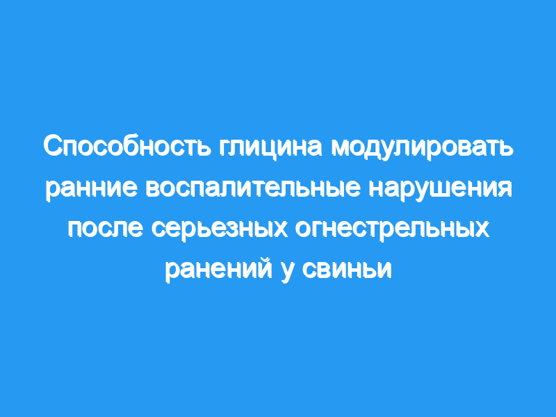 Двадцать свиней были подвергнуты двум стандартным огнестрельным ранениям в живот и бедро. Лечение было начато немедленно. Животные были рандомизированы для получения либо глицина в дозе 180 мг/кг внутривенно в течение 30 мин (n=10), либо обычного физиологического раствора (n=10). Образцы крови брали в исходное время и через 75 мин после травмы. В последующем исследовании 12 свиней подверглись идентичной травме. Кровь брали в те же временные точки и стимулировали липополисахаридом (ЛПС) или ЛПС плюс глицин в течение 2 ч на модели цельной крови ex vivo.