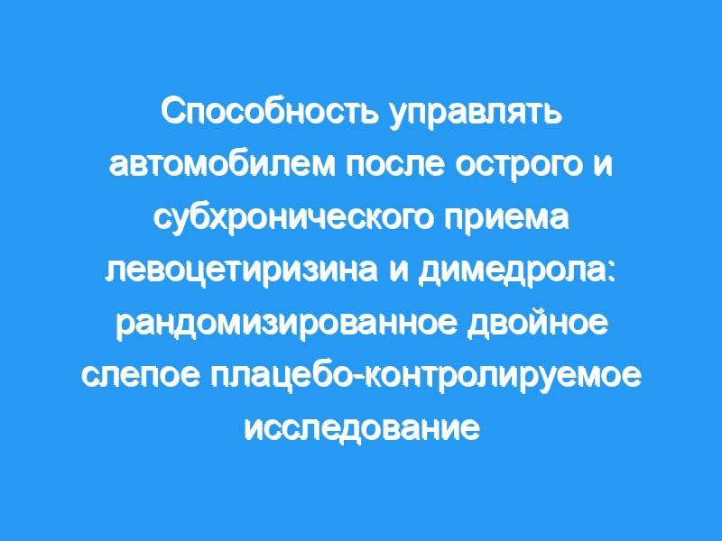 Изучить влияние левоцетиризина (5 мг), димедрола (50 мг) и плацебо на способность управлять автомобилем при обычном дорожном движении.