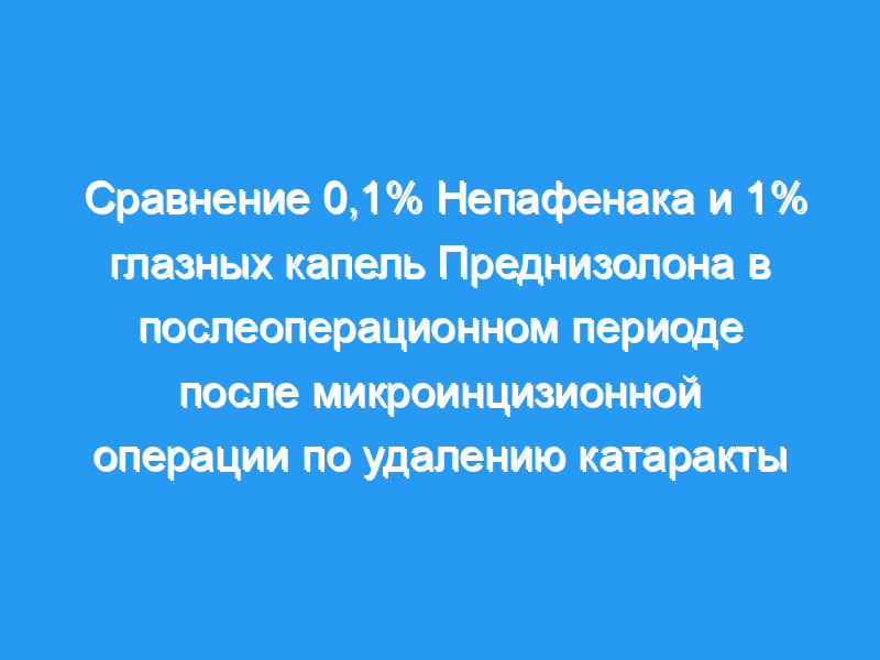 Сравнить эффективность 0,1% непафенака и 1% глазных капель ацетата преднизолона в борьбе с послеоперационным воспалением при микроинцизионной хирургии катаракты.