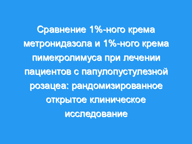 В этом одноцентровом рандомизированном открытом исследовании была исследована группа из 49 пациентов с PR.- изучение этикеток. Пациентам случайным образом назначали лечение либо 1%-ным кремом пимекролимуса, либо 1%-ным кремом метронидазола в течение 12 недель. Реакцию оценивали по количеству воспалительных очагов, тяжести эритемы лица и телеангиэктазии, Общей оценке врача (PGA), а также безопасности и переносимости на исходном уровне и на 3, 6, 9 и 12 неделях.