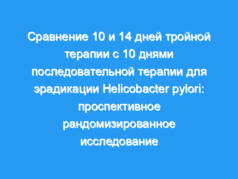 Это было проспективное рандомизированное открытое- этикетка, исследование в одном центре. Мы включили 206 пациентов, которые были разделены на следующие три группы лечения: Группа А (пантопразол в дозе 40 мг дважды в день), амоксициллин в дозе 1 г и кларитромицин в дозе 500 мг в течение 10 дней), Группа В (та же доза, что и в группе А в течение 14 дней) и группа С (пантопразол 40 мг bid и амоксициллин 1 г bid в течение 5 дней, затем пантопразол 40 мг bid, кларитромицин 500 мг bid и метронидазол 500 мг bid в течение дополнительных 5 дней).