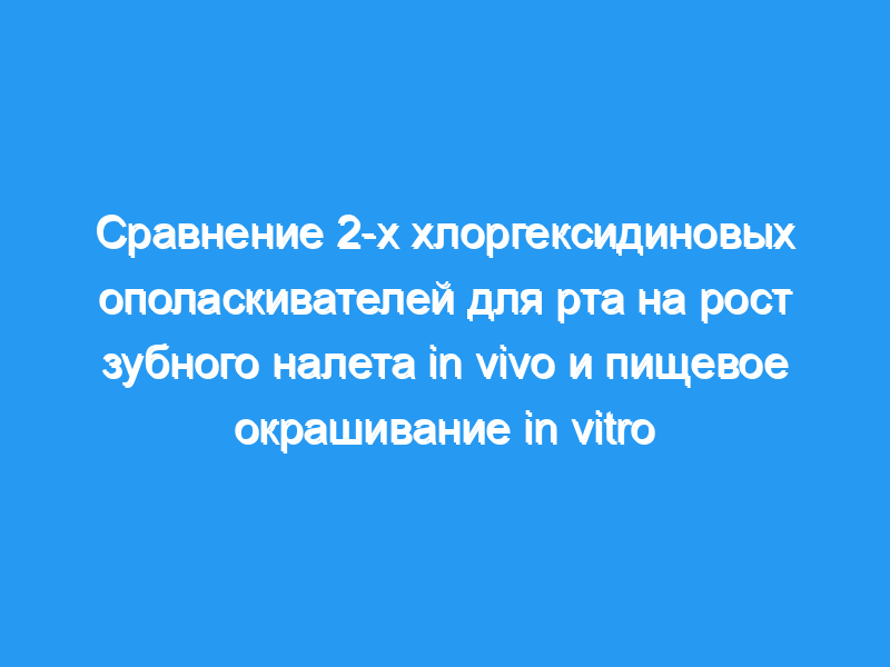 В 1-м исследовании сравнивался эффект полоскания 0,12% хлоргексидина с 0,12% хлоргексидина/0,022% фторида натрия для воздействия на рост зубного налета.