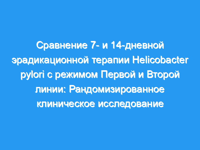 Хотя Helicobacter pylori является ключевой причиной развития рака желудка, скорость его эрадикации снижается при использовании стандартных схем лечения. Для успешной эрадикации была назначена продолжительность лечения для преодоления устойчивости к антибиотикам. Мы должны были сравнить скорость эрадикации при 7-дневном и 14-дневном лечении в схемах первой и второй линии.
