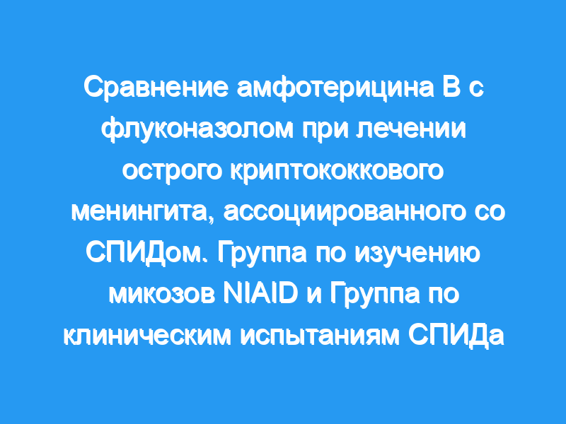 Из 194 подходящих пациентов 131 получал флуконазол и 63 получали амфотерицин В (средняя суточная доза 0,4 мг на килограмм массы тела у пациентов с успешным лечением и 0,5 мг на килограмм у пациентов с неэффективностью лечения, Р = 0,34). Лечение было успешным у 25 из 63 реципиентов амфотерицина В (40%, 95% доверительный интервал, от 26% до 53%) и у 44 из 131 реципиента флуконазола (34%, 95% доверительный интервал, от 25% до 42%) (Р = 0,40). Не было существенной разницы между группами в общей смертности от криптококкоза (амфотерицин против флуконазола, 9 из 63 [14%] против 24 из 131 [18%], Р = 0,48), однако смертность в течение первых двух недель терапии была выше в группе флуконазола (15% против 8 процентов, Р = 0,25). Медиана времени до первого отрицательного посева спинномозговой жидкости составила 42 дня (95% доверительный интервал от 28 до 71) в группе амфотерицина В и 64 дня (95% доверительный интервал от 53 до 67) в группе флуконазола (Р = 0,25). Многофакторный анализ выявил аномальный психический статус (вялость, сонливость или помутнение сознания) как наиболее важный прогностический фактор высокого риска смерти во время терапии (Р менее 0,0001).