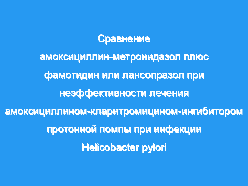 Ингибитор протонной помпы — амоксициллин-метронидазол рекомендуется в качестве второй линии терапии Helicobacter pylori в Японии. Авторы оценили эффективность и безопасность эрадикации второй линии с использованием антагониста Н2-рецепторов фамотидина в качестве замены ингибитора протонной помпы.