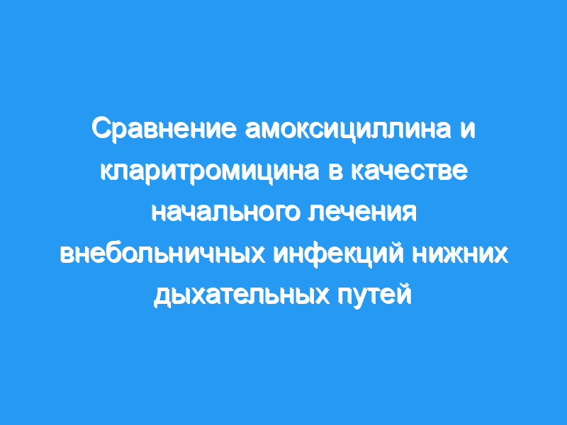 Целью исследования было сравнить эффективность известного препарата амоксициллина с новым макролидом кларитромицином для первоначального лечения взрослых с внебольничной инфекцией нижних дыхательных путей. Метод: Последовательные взрослые, соответствующие стандартному определению инфекции нижних дыхательных путей, поступившие к 14 врачам общей практики в двух соседних клиниках, были распределены на антибактериальную терапию случайным, однократным слепым способом. Результат лечения оценивался по времени, затраченному пациентом на возвращение к нормальной деятельности или работе, скорости устранения симптомов, количеству повторных консультаций и побочных эффектов.