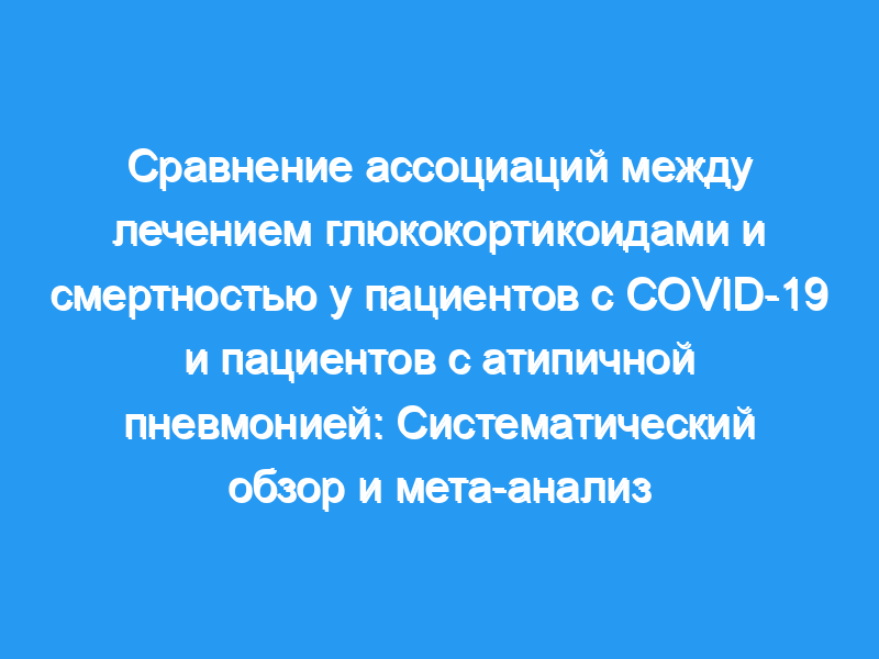 Лечение глюкокортикоидами снизило смертность у пациентов с COVID-19 и атипичной пневмонией критической степени тяжести, однако между этими двумя заболеваниями среди субпопуляций существовали различные лечебные эффекты, главным образом в отношении эффектов, зависящих от пола и возраста, оптимальных доз и сроков применения глюкокортикоидов.