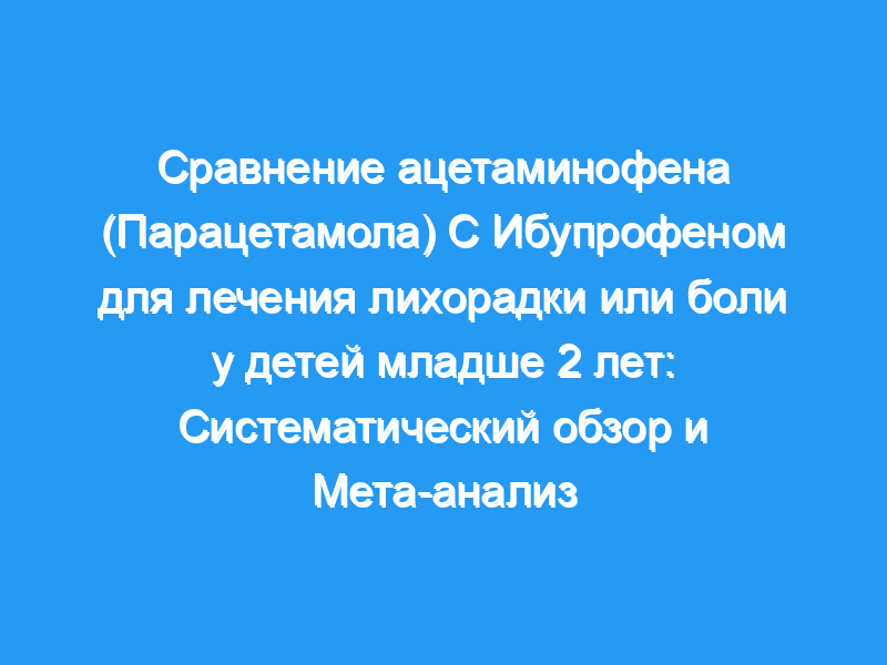 Сравнить ацетаминофен с ибупрофеном для кратковременного лечения лихорадки или боли у детей младше 2 лет. Источники данных: Систематический поиск в базах данных MEDLINE, Embase, CINAHL, а также в Кокрейновском центральном реестре контролируемых исследований и реестрах исследований. ClinicalTrials.gov и Австралийско-Новозеландский реестр клинических испытаний с момента создания до марта 2019 года без языковых ограничений. Выбор исследования: Рассматривались исследования любого плана, в которых участвовали дети младше 2 лет и непосредственно сравнивали ацетаминофен с ибупрофеном, сообщая о результатах жаропонижающего, обезболивающего и/или безопасности. Не было никаких ограничений на продолжительность наблюдения. Извлечение и обобщение данных: Следуя руководству «Предпочтительные элементы отчетности для систематических обзоров и метаанализов» (PRISMA), 2 автора независимо извлекли данные и оценили качество. Данные объединялись с использованием метода фиксированных эффектов, если I2 составлял менее 50%, и с использованием метода случайных эффектов, если I2 составлял 50% или больше. Основные результаты и меры: Первичными исходами были лихорадка или боль в течение 4 часов после начала лечения. Результаты безопасности включали серьезные побочные эффекты, нарушение функции почек, желудочно-кишечное кровотечение, гепатотоксичность, тяжелую инфекцию мягких тканей, эмпиему, астму и/или одышку.