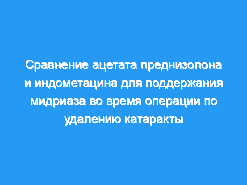 Мы пришли к выводу, что ацетат преднизолона менее эффективен, чем индометацин, для поддержания мидриаза во время операции по удалению катаракты.