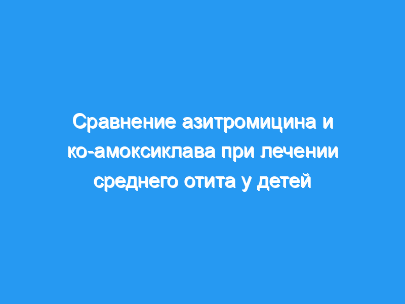 Было проведено открытое рандомизированное исследование с участием 159 детей (в возрасте от 1 до 8 лет) с острым средним отитом для сравнения клинической эффективности азитромицина (n = 105) и ко-амоксиклава (n = 54). Азитромицин (10 мг/кг/сут) вводили в виде однократной дозы в течение трех дней, а ко-амоксиклав вводили внутривенно в течение десяти дней в дозировке в соответствии с инструкциями производителя для страны.