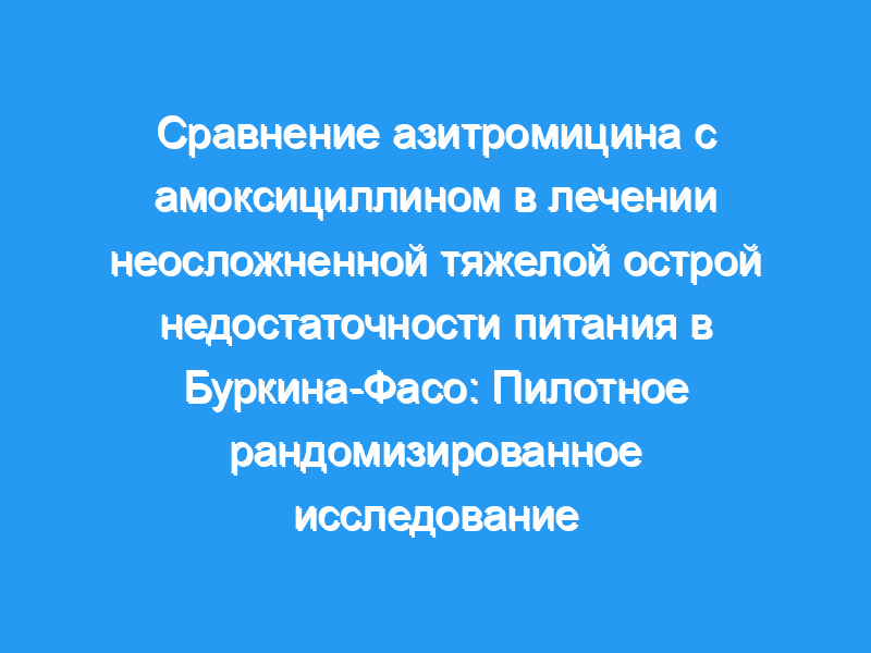 Азитромицин является многообещающей альтернативой амоксициллину в лечении неосложненной тяжелой острой недостаточности питания (СЭМ), поскольку его можно вводить в виде однократной дозы и он эффективен против нескольких патогенов, вызывающих инфекционные заболевания и смертность у детей в возрасте до 5 лет. В этом пилотном исследовании мы стремились установить целесообразность более крупного рандомизированного контролируемого исследования и предоставить предварительные доказательства, сравнивающие влияние азитромицина и амоксициллина на увеличение веса у детей с неосложненным СЭМ. Мы зарегистрировали детей в возрасте 6-59 месяцев с неосложненным СЭМ в шести медицинских центрах Буркина-Фасо.