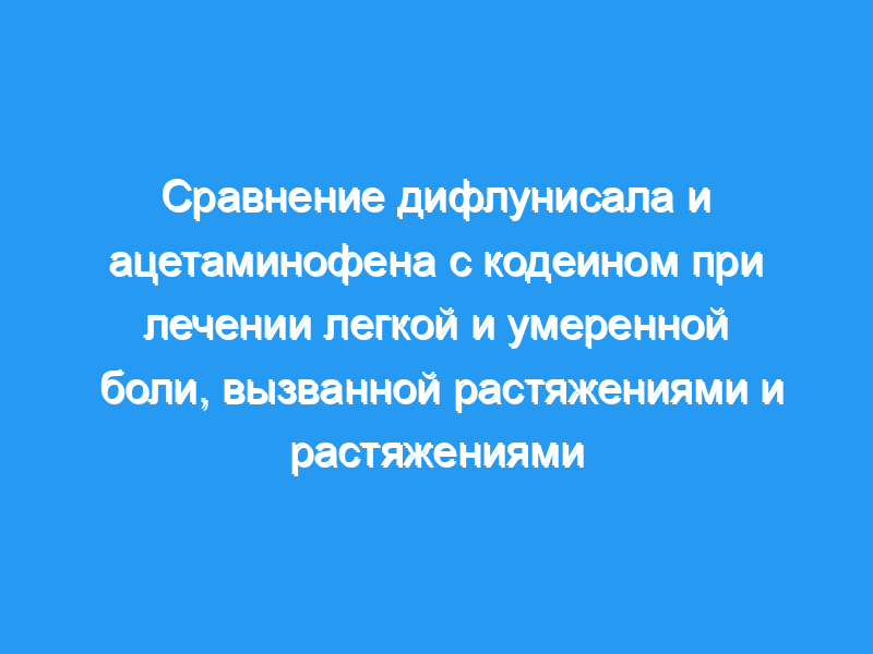 Пятидесяти спортсменам колледжа с острыми растяжениями связок и растяжениями, связанными с футболом, случайным образом назначили лечение дифлунизалом или ацетаминофеном с кодеином в течение семи дней.