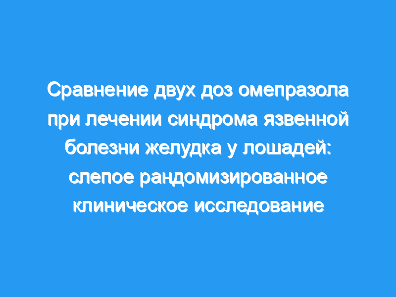 Причины проведения исследования: Исследования омепразола показали, что дозы всего 0,7 мг/кг массы тела per os являются мощными подавителями выработки кислоты. Тем не менее, на сегодняшний день ни в одном исследовании не сравнивалась эффективность лечения различными дозами в клинических случаях язвенной болезни желудка у лошадей. Кроме того, не было проведено никаких исследований для сравнения реакции заживления плоскоклеточной и железистой слизистой оболочки на кислотоподавляющую терапию.