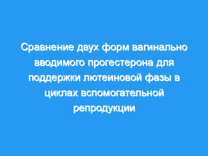 Целью данного исследования было сравнение эффективности этих двух форм для поддержки лютеиновой фазы в цикле вспомогательной репродукции.