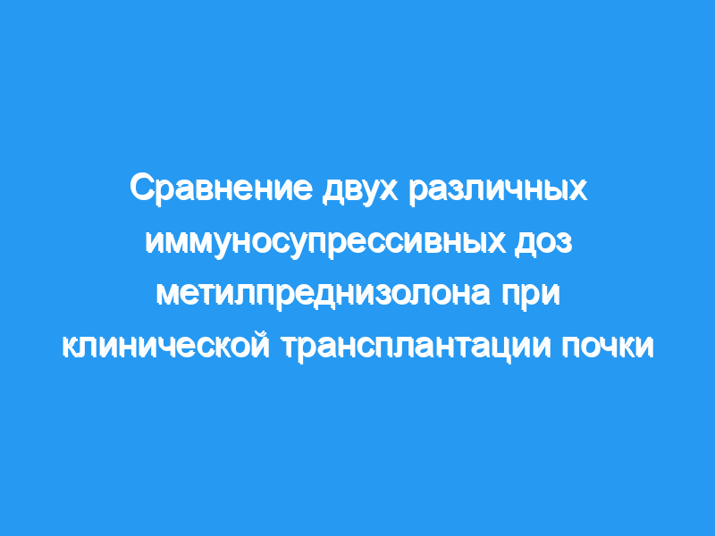 Для изучения иммуносупрессивного эффекта метилпреднизолона тридцать реципиентов трупной почки были случайным образом распределены на две группы: контрольную группу с низкой дозой и экспериментальную группу с высокой дозой.