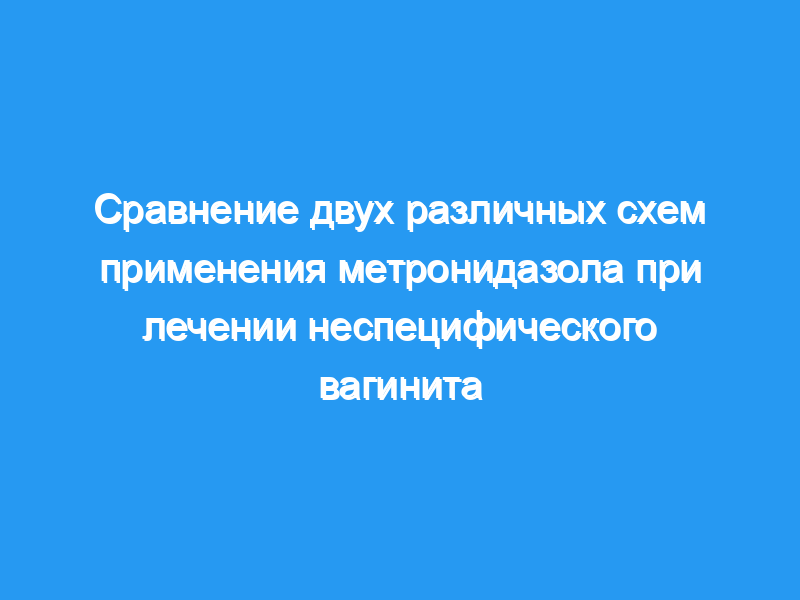 25 пациенток с симптомами неспецифического вагинита получали метронидазол либо в дозе 2000 мг в однократной дозе, либо в дозе 400 мг три раза в день в течение 5 дней.