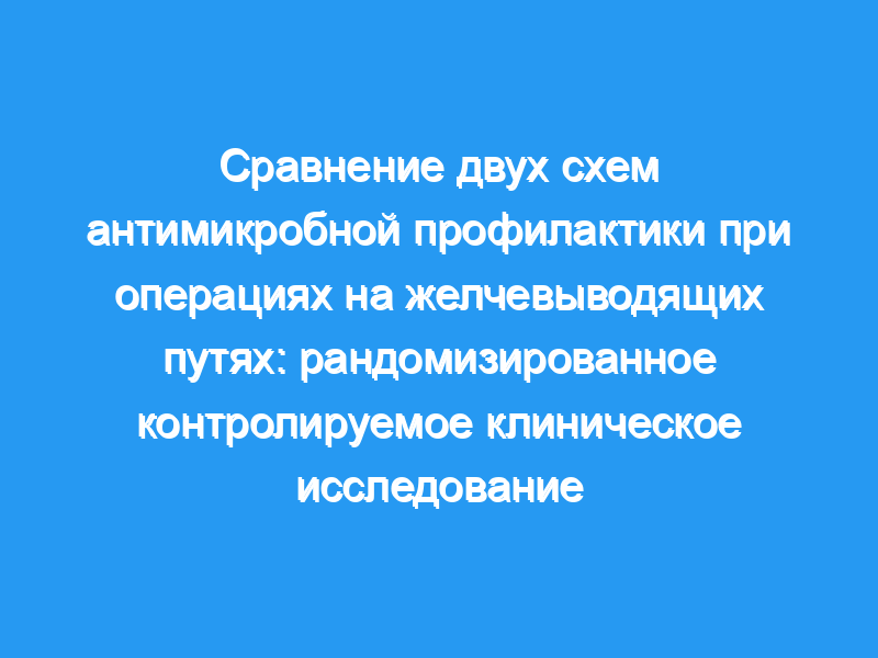 Целью данного исследования был анализ эффективности профилактики во время операций на желчевыводящих путях и желчном пузыре амоксициллином/клавуланатом и сравнение его с комбинацией цефалотина и клиндамицина. Дизайн: Рандомизированное слепое клиническое исследование со слепым независимым наблюдателем. Место проведения: Центр третичной медицинской помощи. Пациенты: В исследование были включены сорок два пациента. Все они перенесли операцию на желчевыводящих путях и/или желчном пузыре. Они были разделены на две группы: 22 в группе А (цефалотин и клиндамицин) и 20 в группе В (амоксициллин/клавуланат). Вмешательства: Пациентам из группы А внутривенно вводили три дозы цефалотина (2 г при введении анестетика и две дополнительные дозы по 1 г с шестичасовыми интервалами) и три дозы клиндамицина (600 мг каждые шесть часов). Пациенты из группы В получали три дозы амоксициллина/клавуланата (1000/200 мг внутривенно, одну во время введения анестезии, а затем еще две с шестичасовыми интервалами).