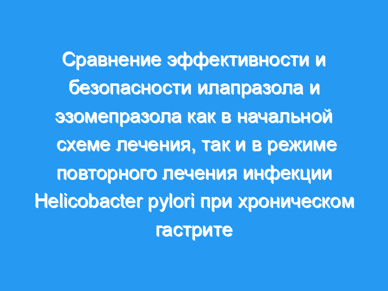 Целью данного исследования было сравнить эффективность и безопасность илапразола и эзомепразола как в начальной схеме лечения, так и в режиме повторного лечения инфекции H. pylori при хроническом гастрите, а также изучить факторы риска неудачи эрадикации.