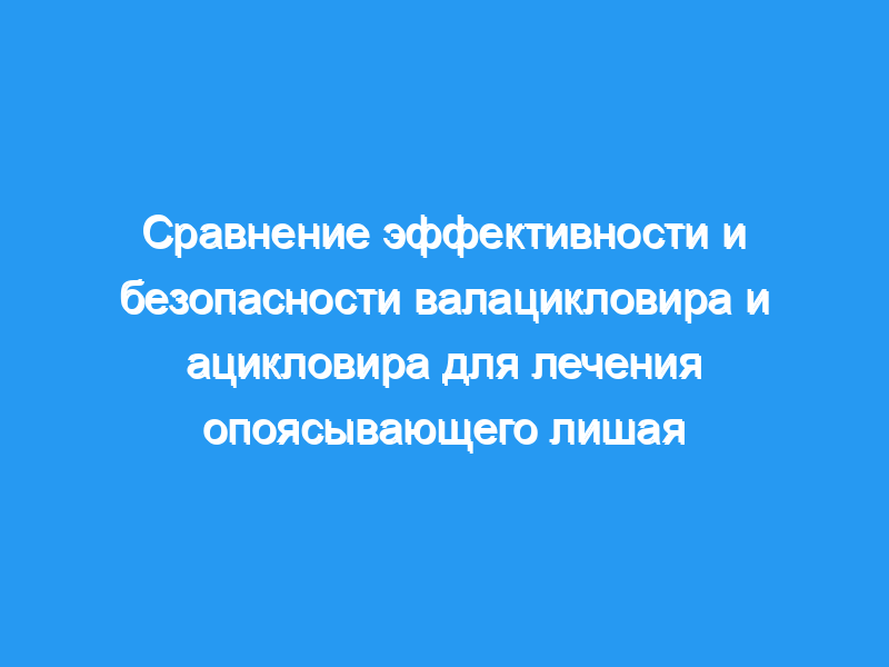 Пациенты, рандомизированные в группу валацикловира, получали две таблетки валацикловира по 500 мг три раза в день и по одной таблетке плацебо два раза в день. Пациенты в группе ацикловира получали одну таблетку ацикловира по 800 мг пять раз в день и одну таблетку плацебо три раза в день в течение 7 дней. Основные показатели результатов: Основные показатели результатов включали частоту, тяжесть и продолжительность глазных осложнений, сообщения пациентов о боли, связанной с опоясывающим лишаем, и исход кожных поражений. Переносимость также оценивалась по частоте и типам побочных эффектов и изменениям лабораторных показателей. Анализ носил в основном описательный характер и проводился на основе намерения лечить.