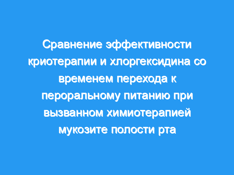 Целью этого исследования было сравнить эффективность криотерапии и хлоргексидина со временем перехода на пероральное питание при вызванном химиотерапией мукозите полости рта.