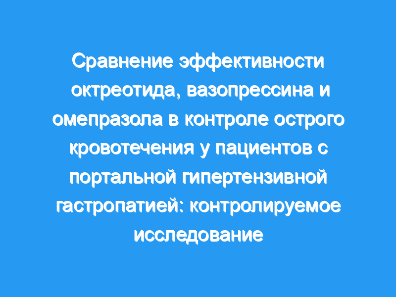 Полный контроль кровотечения после 48 ч инфузии препарата был достигнут у всех пациентов, получавших октреотид (100%), 14/22 пациентов, получавших вазопрессин (64%), и 13/22 пациентов, получавших омепразол (59%). Октреотид требовал гораздо меньше времени и значительно меньшего количества переливаний крови для контроля кровотечения. Пациенты, получавшие вазопрессин, испытывали больше побочных эффектов, чем те, кто получал октреотид и омепразол. У 17 пациентов, у которых кровотечение не было остановлено в течение 48 ч ни вазопрессином, ни омепразолом, полный контроль кровотечения был достигнут при комбинированном применении этих двух препаратов. Последующая эндоскопия показала значительное улучшение эрозий слизистой оболочки желудка, поверхностных изъязвлений и эритемы.