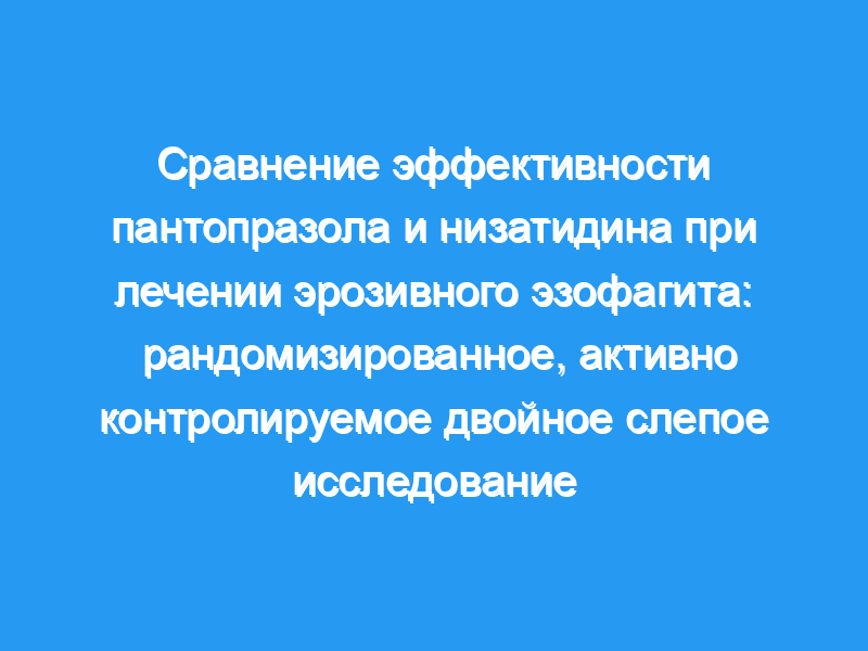 Многоцентровое, двойное слепое, рандомизированное, активное-Было проведено контролируемое исследование (221 пациент) для сравнения 20 и 40 мг пантопразола ежедневно с низатидином в дозе 150 мг в день (максимум, 8 недель). Первичной конечной точкой было эндоскопическое лечение эрозивного эзофагита (1 или 0 степень). Вторичной конечной точкой было симптоматическое улучшение.