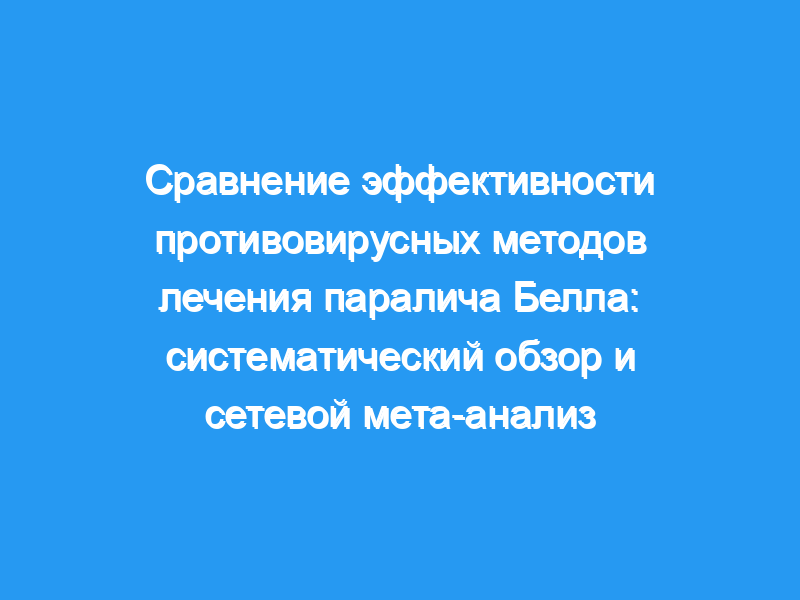 Широко используются противовирусные методы лечения паралича Белла, но нет однозначного вывода о том, какой из них является наиболее эффективным противовирусным препаратом. Мы провели систематический обзор рандомизированных контролируемых исследований (РКИ), включая сетевой мета-анализ, для изучения сравнительной эффективности противовирусных методов лечения паралича Белла. Данные: Были включены РКИ, сравнивающие эффективность противовирусного лечения и плацебо. Риск предвзятости внутри и между исследованиями оценивался с помощью кокрановского инструмента и подхода GRADE соответственно. Был проведен попарный мета-анализ случайных эффектов, за которым последовал сетевой мета-анализ. Источники: С момента создания до 18 мая 2020 года был проведен поиск в трех электронных базах данных. Выбор исследования: было включено 11 исследований и 3393 пациента с четырьмя руками и одиннадцатью контрастами.