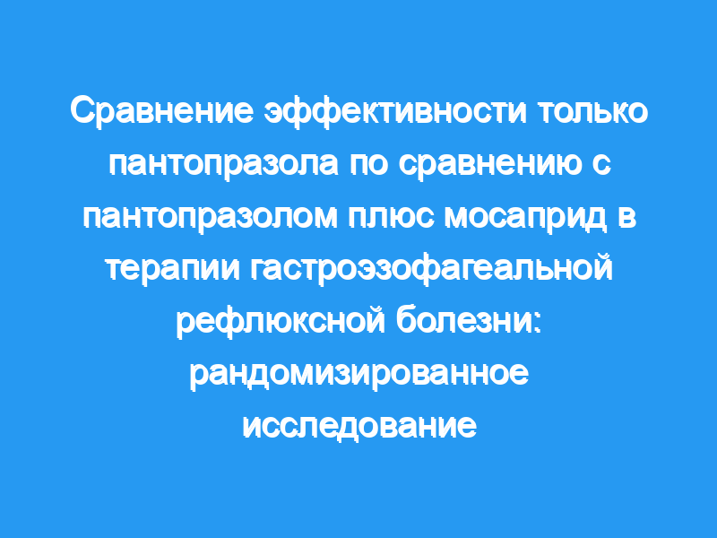 Целью настоящего исследования было сравнить эффективность для лечения ГЭРБ только пантопразола с комбинацией пантопразола и мосаприда.