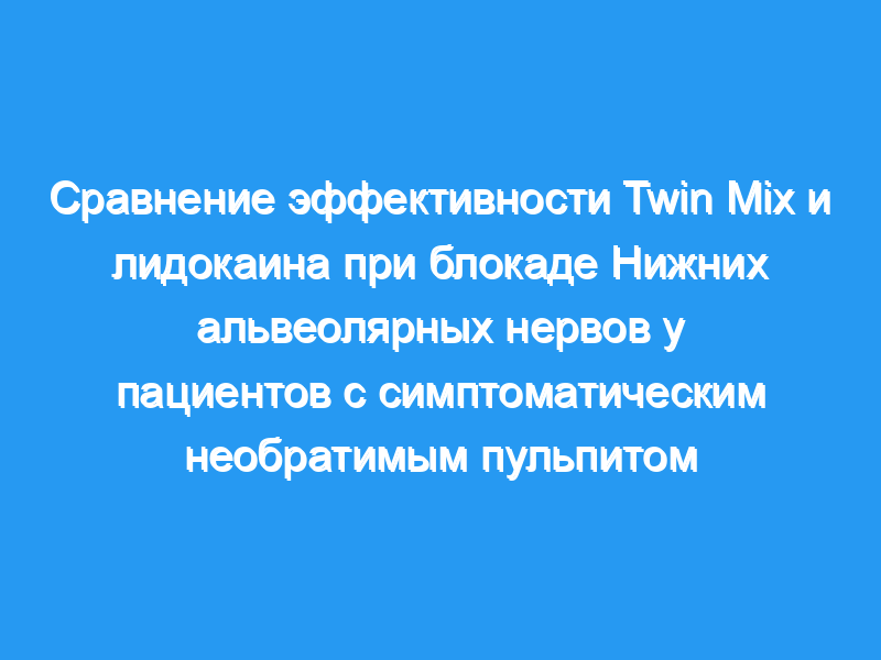 В этом рандомизированном двойном слепом проспективном клиническом исследовании с активным контролем оценивалась анестезирующая эффективность 2% лидокаина с адреналином 1:200 000 по сравнению с смесью 2% лидокаина с адреналином 1:200 000 и 1 мл 4 мг дексаметазона (Twin mix) при блокаде нижних альвеолярных нервов (IANBs) у пациентов с симптоматическим необратимым пульпитом (SIP) нижнечелюстного моляра.