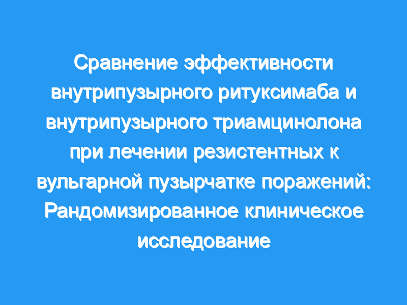 Обыкновенная пузырчатка (PV) — везикулобуллезное аутоиммунное заболевание, характеризующееся выработкой аутоантител против молекул клеточной адгезии. Лечение ФВ основано на применении системных кортикостероидов наряду с иммуносупрессивной терапией, но иногда встречаются ограниченные резистентные поражения, не реагирующие на традиционную системную терапию. Это двойное слепое рандомизированное клиническое исследование было разработано для оценки эффективности внутрипузырного ритуксимаба по сравнению с триамцинолоном при лечении невосприимчивых поражений кожи головы и слизистой оболочки пузырчаткой.