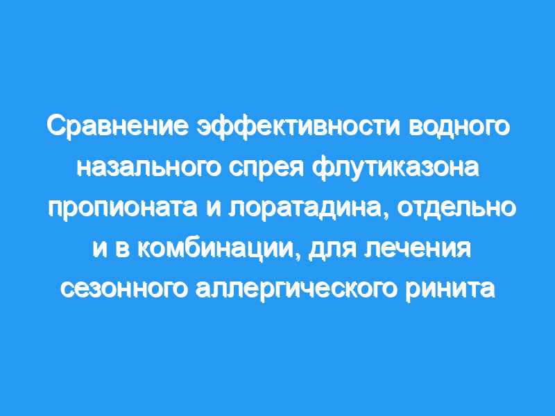 Интраназальные кортикостероиды и пероральные антигистаминные препараты эффективны при лечении сезонного аллергического ринита, хотя терапевтическая ценность одновременного применения двух типов препаратов редко оценивалась. Это исследование было разработано для сравнения эффективности, безопасности и влияния на качество жизни водного назального спрея флутиказона пропионата (FP ANS), лоратадина, FP ANS плюс лоратадин и плацебо (водный назальный спрей плюс таблетка) при лечении сезонного аллергического ринита во время сезона аллергии на горный кедр в Южной центральный Техас.