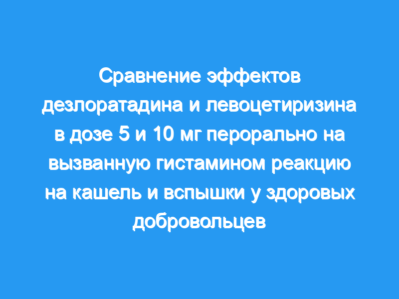 Было обнаружено, что, за исключением реакций вспышки на 30-й минуте, левоцетиризин в дозе 5 и 10 мг подавлял вызванные гистамином волдыри и реакции вспышки в большей степени, чем дезлоратадин в дозе 5 и 10 мг. Не было каких-либо существенных различий между дезлоратадином в дозе 5 и 10 мг во все периоды. Левоцетиризин в дозе 10 мг подавлял аллергические реакции значительно сильнее, чем левоцетиризин в дозе 5 мг, только на 24-й час.